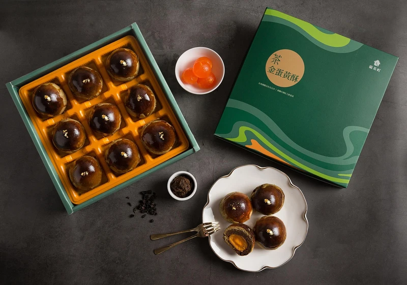 此外,「鐵觀音茶金蛋黃酥」每顆渾圓的蛋黃酥烏豆沙內餡及酥皮,都浸入了2g約超過50片茶中之王鐵觀音原片茶葉茶球研磨的茶粉,讓蛋黃酥散發出桂花與乳香,尾韻伴隨弱果酸香的鐵觀音茶韻!
