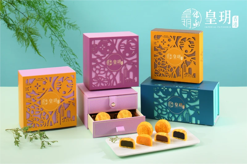 香港皇玥月餅禮盒除了月餅好吃外,禮盒更是一大看點!全新的低糖月餅外盒以時髦的淺紫色呈現,再搭配鏤空雕花設計,綴以燈籠、玉兔、荷花及香港地標,整體充滿巧思與設計感, 不只是月餅禮盒,還能當珠寶盒使用,讓你送禮面子十足!