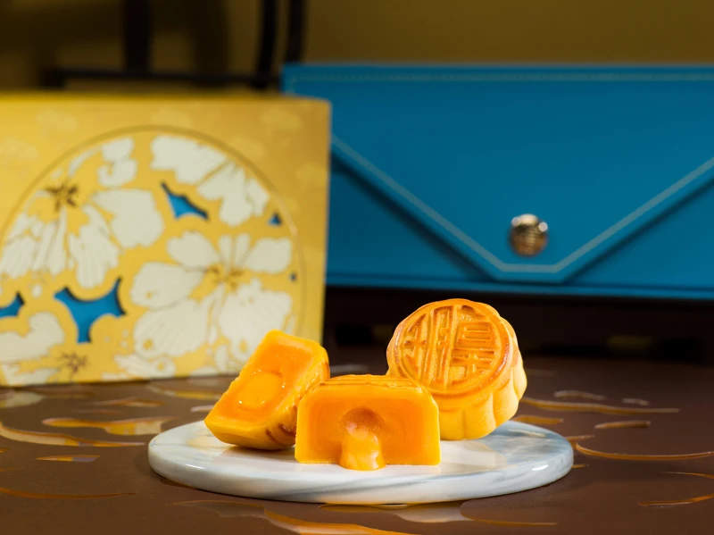 以超夯的蛋黃酥、鳳梨酥、綠豆椪以及廣式月餅做組合,一次滿足饕客們對於不同月餅的渴望!而中秋限定「蛋黃酥」內餡嚴選在地飽滿鴨蛋製成的鹹蛋黃、紐西蘭天然無水奶油,搭配綿密手工烏豆沙餡,口感酥鬆、香氣紮實飽滿。