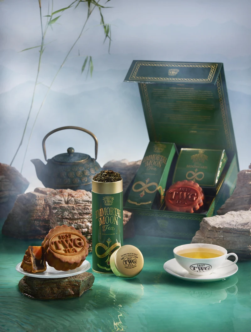 全新的高級訂製茶「永恆之月茗茶」,以仰望月夜為靈感打造,嚴選珍貴的白茶與清香的綠茶作為基底,再注入熟成莓果,搭配月餅恰到好處!