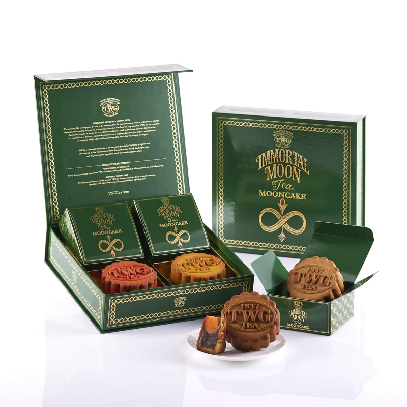 TWG TEA「永恆之月茗茶月餅禮盒」,共有2款(四入、兩入)月餅禮盒可以依照喜好選擇!外盒以內斂的墨綠色搭配奢華的金線點綴,低調又高雅,讓你送禮面子十足!
