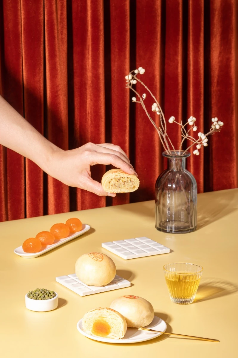而「月餅款」則以舊振南「廣式月餅」組成,加入鳳梨、烏梅、檸檬等祖傳配方,以文火慢熬成糖漿,製作出甜而不膩、剔透飽滿的月餅內餡。