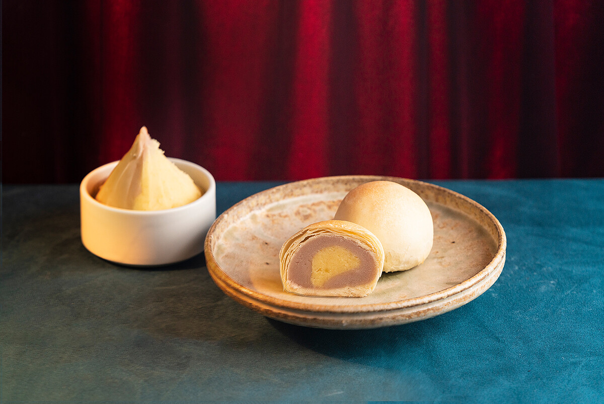 新品「芋豆椪」多層次的雪白外衣內,驚喜地將道地的台式糕餅綠豆椪與招牌蜜芋餡結合,沙沙的綠豆內餡與芋頭的風味完美結合,清甜不膩口,讓人忍不住想一吃再吃啊!