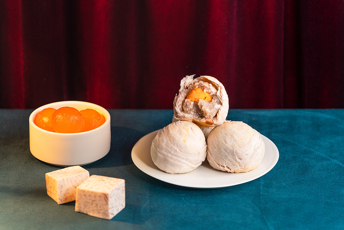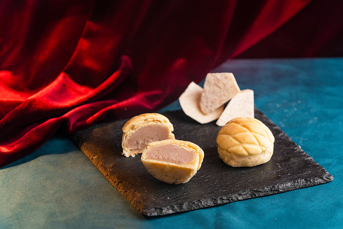 食芋堂的經典芋品糕點,外層的手工千層酥皮,細緻鬆脆,而內餡加入滿滿的蜜芋頭,再搭配半顆鹹蛋黃,鹹甜風味伴隨芋頭香氣,給大家負擔少一點的升級美味!