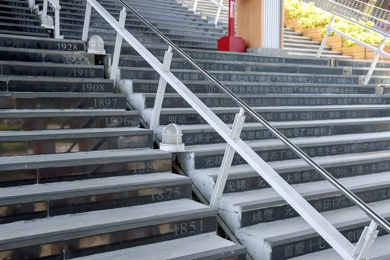 這項藝術家莊普先生的作品位於前往「JAPAN SKY DINE 日本美食天堂」的石梯,,記錄了從1624起至今的歷史事件,全都被刻在階梯上完美融入於整體空間設計中,一邊是年代、一邊是當時的事記,這樣的歷史銘文有如編年史般,讓每位旅客都能夠經過「歷史之梯」加深印記。