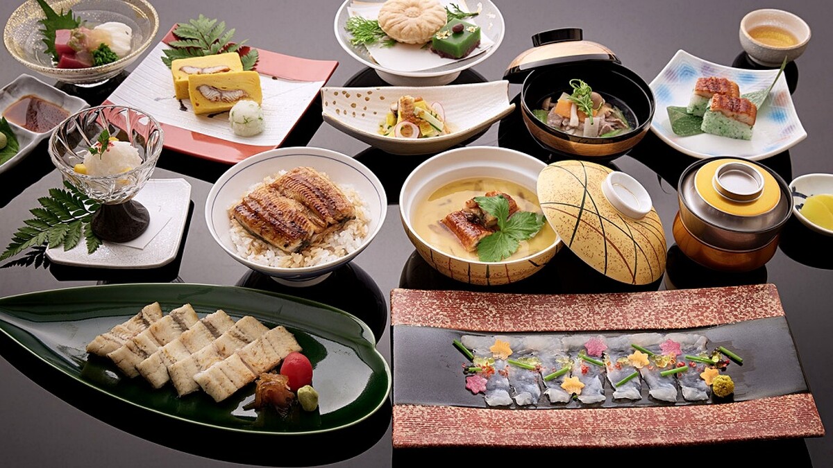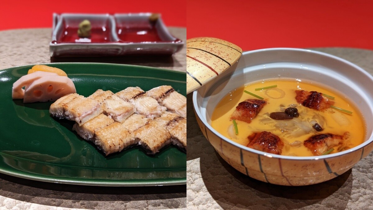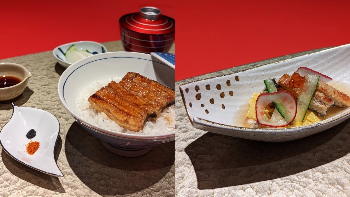 喜歡吃鰻魚的人,也可於8/4之前品嚐「鰻魚懷石料理」!料理長郡司行雄(Yukio Gunji)在11品晚餐套餐中,用正統日式手法先烤再蒸、人工去骨,完整保留鰻魚膠質及Q彈口感,能從「鰻魚黃瓜拌」、「薄切白身魚」、「鰻魚捲玉子」、「鰻魚白燒」品嚐不同細膩口感,「鰻魚懷石料理」晚餐套餐3800元。