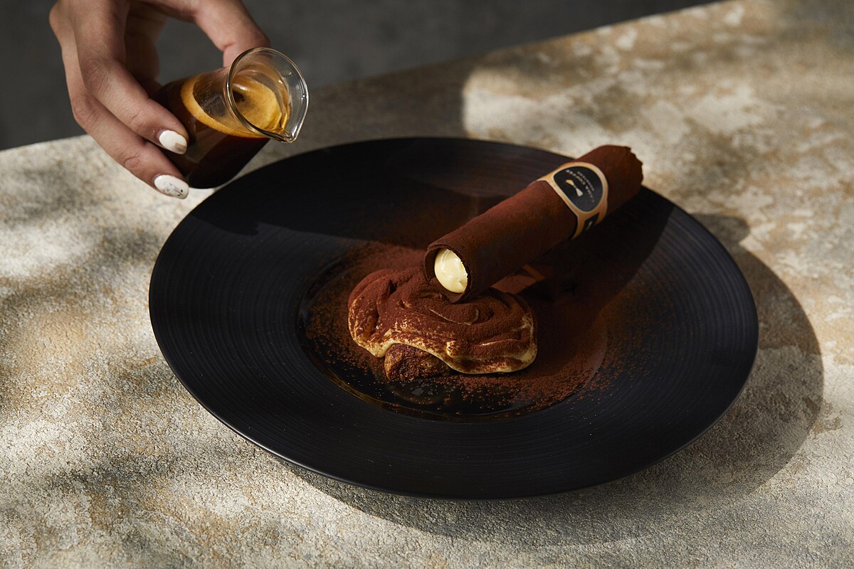 除了飲品之外,這裡也有餐食選擇,更特別將咖啡佐餐入菜,像是「哥倫深焙水煮雞胸凱薩沙拉」就使用cama café獲獎豆「精品哥倫翡玉」,將咖啡舒肥胸肉,甜點「松菸招牌雪茄」則是以經典提拉米蘇為概念,製成雪茄造型,搭配哥倫比亞濃縮,是本店招牌甜品。