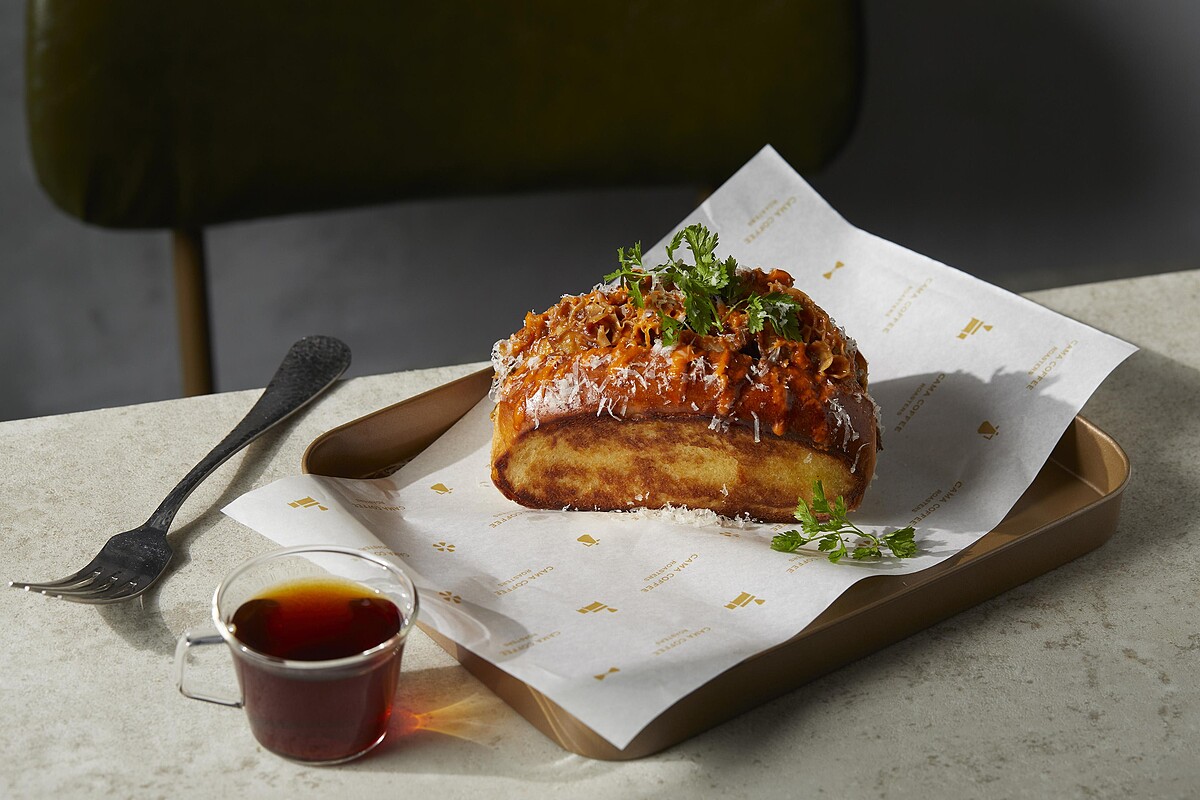 《CAMA COFFEE ROASTERS豆留文青》提供多款咖啡飲品,像是呼應鍋爐房外觀視覺的「水泥拿鐵」、「紳士帽子拿鐵」以及「桃色藝妓」都是必點推薦,另外還有能自己動手體驗的「台灣茶手沖咖啡」系列,以及與亞洲50大酒吧ROOM by Le Kief推出聯名咖啡調酒,都能夠一次品嚐。