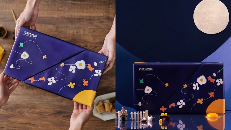 想要三種口味一次擁有?大武山牧場也貼心設想好了!推出「蛋入蛋捲 經典禮盒」,用牧場、雞蛋意象點綴包裝,高飽和度色彩、雞蛋花傳遞滿滿活力,讓收禮者一看到就有好心情!限量3000盒的「蛋好月圓 中秋禮盒」,則用深夜藍色作為背景,呈現出賞月的迷人時刻,還有特殊開盒設計能作為書架或收納盒,吃完蛋捲也能把美好意象繼續保存。