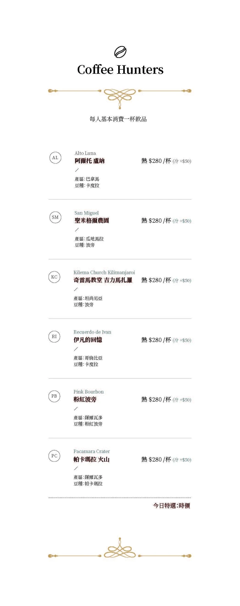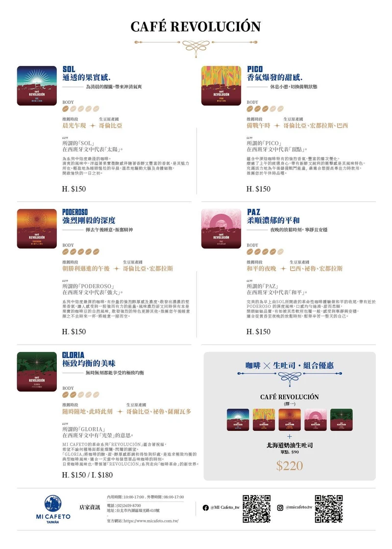 《MI Cafeto》店內菜單