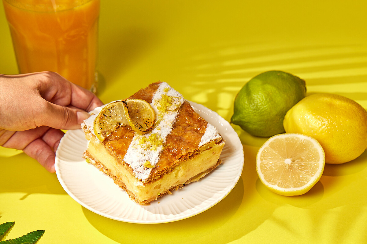 炎炎夏日到來,最適合來點酸甜解膩的「檸檬千層派」拉!內餡檸檬卡士達醬以新鮮檸檬汁、奶油、吉利丁與卡士達製成,再搭配法國直送千層派皮,入口感受清新的檸檬香氣,與微酸微甜的口感,讓人忍不住一口接一口!