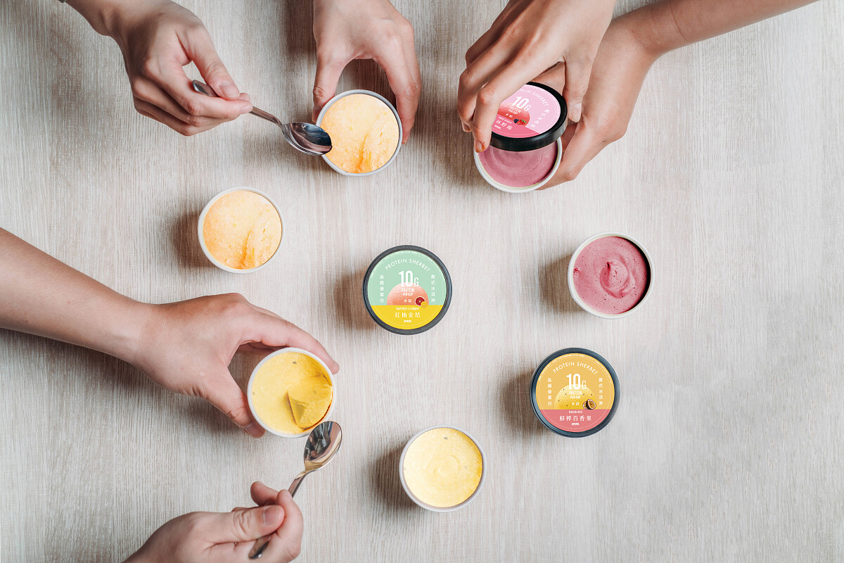 「高蛋白雪酪」全新3款水果風味均以減糖和在地水果為特色,無額外添加水果香料和過多的糖分,每一口都超清爽!