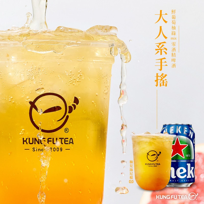 功夫茶繼之前推出讓榴槤控失心瘋「泰式榴槤莎莎」的後,這次迎接中秋節到來,與海尼根合作推出超應景的限定零酒精飲品「柚見海尼根0.0」,讓大家就算不飲酒,藉由手搖飲,也能享受到有如拉格啤酒般清爽順口的味道!