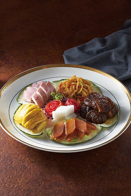 這道在台灣傳統宴席菜是十分重要的首盤,而欣葉鐘菜的冷菜共有三彩拼盤、五福拼盤與七喜拼盤共3種選擇,其中深受饕客喜愛的五福拼盤菜色能逗品嘗到招牌的鐘菜獨家限定菜色太監雞、香烤烏魚子、海蜇皮、五味軟絲、滷花菇,整道料理十分澎湃,又能同時享用道海陸滋味,一直是店內的人氣必點菜色之一!