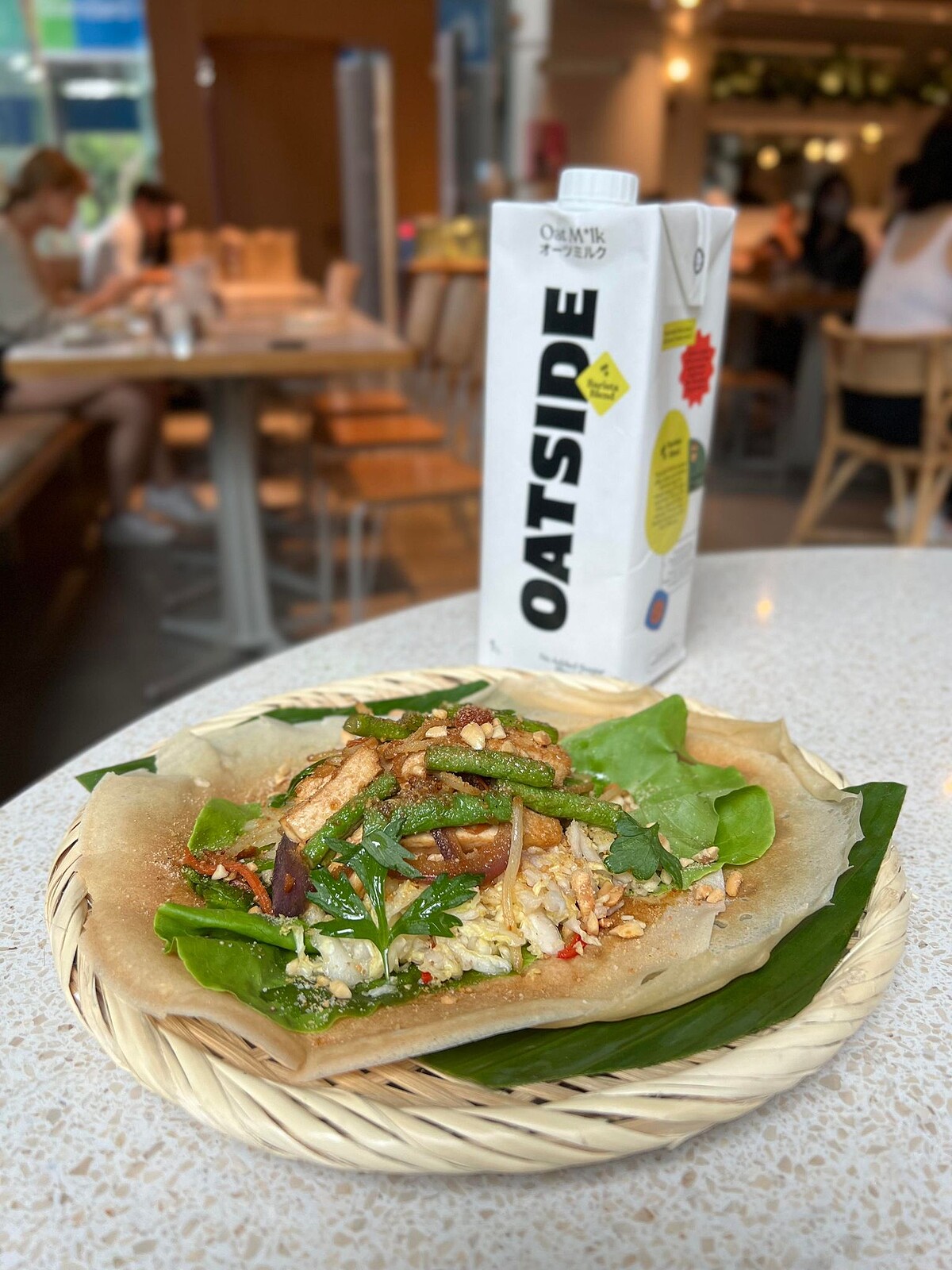 而「瘦子燕麥奶潤餅」以及「小小冬蔭功」則是使用「OATSIDE 職人燕麥植物奶」,尤其「瘦子燕麥奶潤餅」更是Jeffrey自己最推的一道,獨特的燕麥奶潤餅皮,加上特製豆瓣醬、奶油萵苣、醋溜土豆絲、鮮蔬、花生等,呈現出爽口不膩的層次口感。