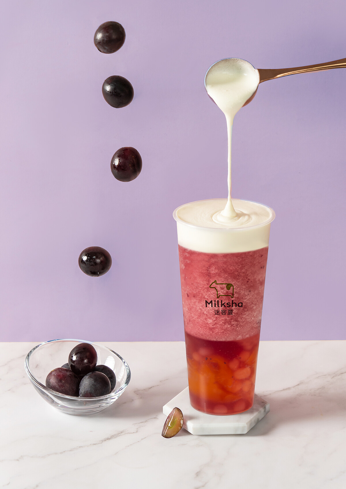 其中「葡萄慕昔」搭配迷客夏自家綠光鮮奶,打製成超綿密雪沙口感的奶昔,還有著夢幻紫色外觀,而咀嚼控則可以選擇「KUMO啵萄」,內含滑Q茉莉茶凍與脆啵啵球,加上100%紐西蘭乳源製成的KUMO雲奶霜,清爽鹹甜的滋味讓人難以抗拒。
