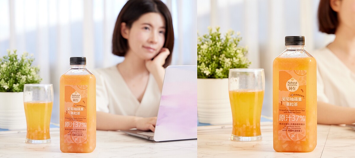 清爽酸甜滋味、滿滿橘色能量—「葡萄柚蘋果果粒茶」