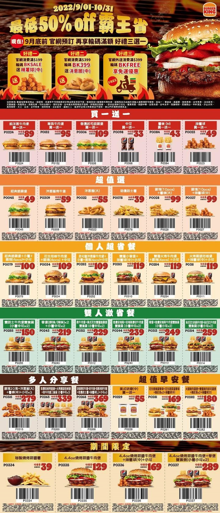 此外,個人超省餐「堡、薯、點心與飲品」也只要百元就能大口開吃,而中秋團聚吃什麼?漢堡王祭出多人餐優惠279元起,包含20塊雞塊搭配大份洋蔥圈、中份薯條及三杯小杯百事可樂,這次加碼推出超值明星商品,安格斯厚切牛肉堡搭配犇牛肉堡、勁濃安格斯牛肉堡、勁濃起士薯與大份辣薯球、三杯小杯百事可樂,下殺63折起!