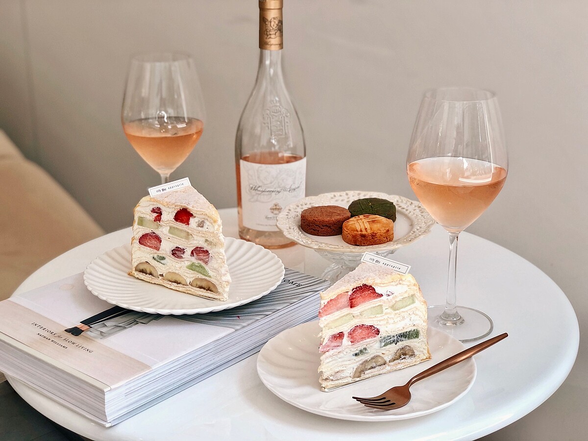 這款「綜合水果千層」在軟嫩的千層餅皮裡藏了滿滿新鮮水果,加上不甜膩的奶餡,實在是甜點狂粉的療癒美食,再加上同步販售天使絮語粉紅酒,一口蛋糕,一口微醺滋味,是不是等不及要享受了?