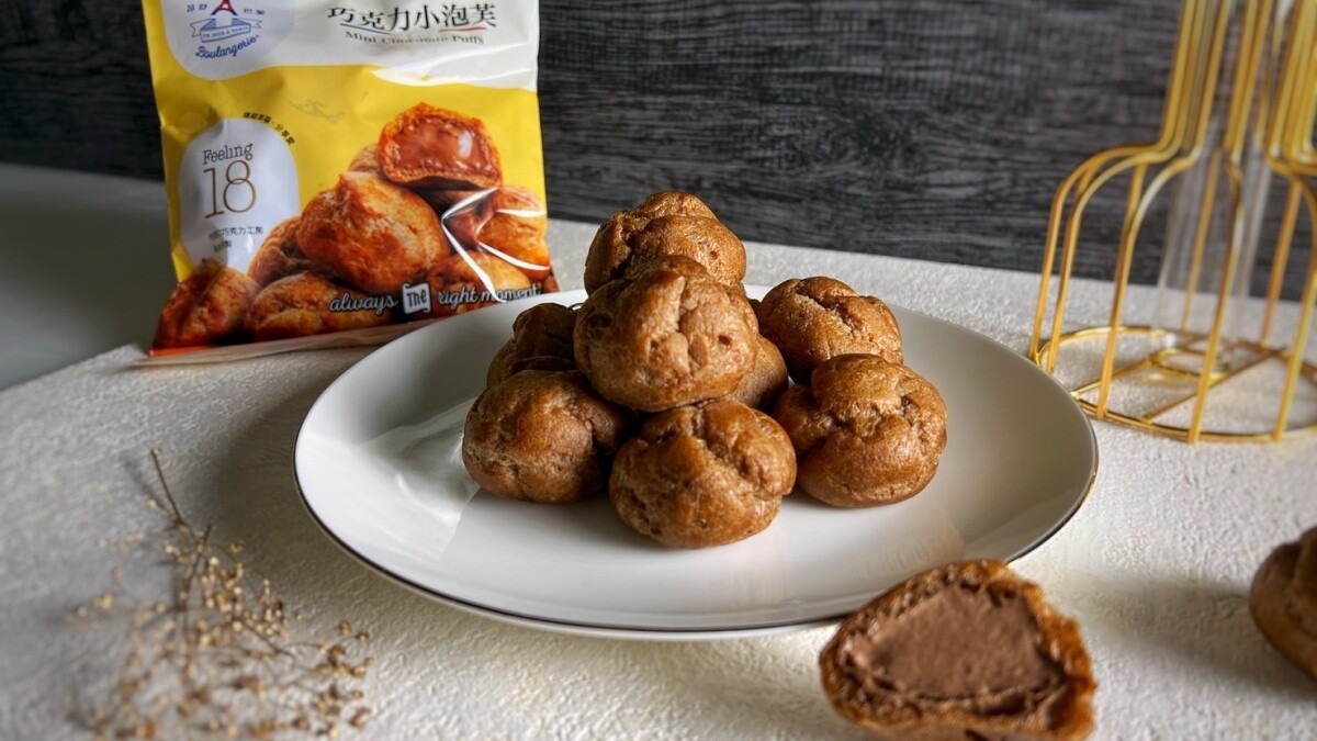 將昂舒巴黎的「巧克力泡芙」冷凍後,口感飽滿紮實,宛如冰淇淋般的內餡綿密又濃郁,每一口都能感受到幸福滋味!