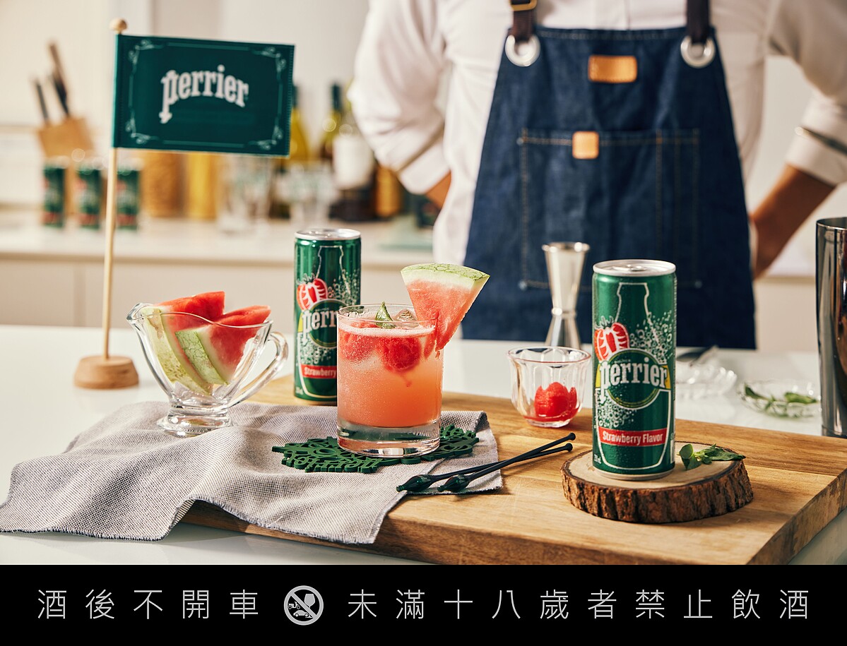 使用沛綠雅草莓風味氣泡水加上西瓜特製,搭配蜂蜜、檸檬汁,加上伏特加為基底。