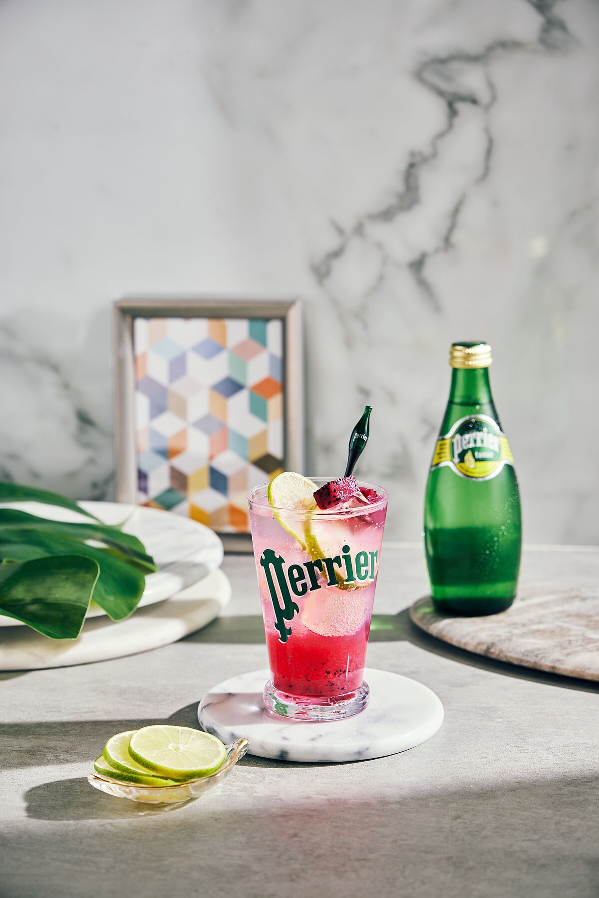 使用沛綠雅檸檬風味氣泡水及紅龍果製作即可完成。