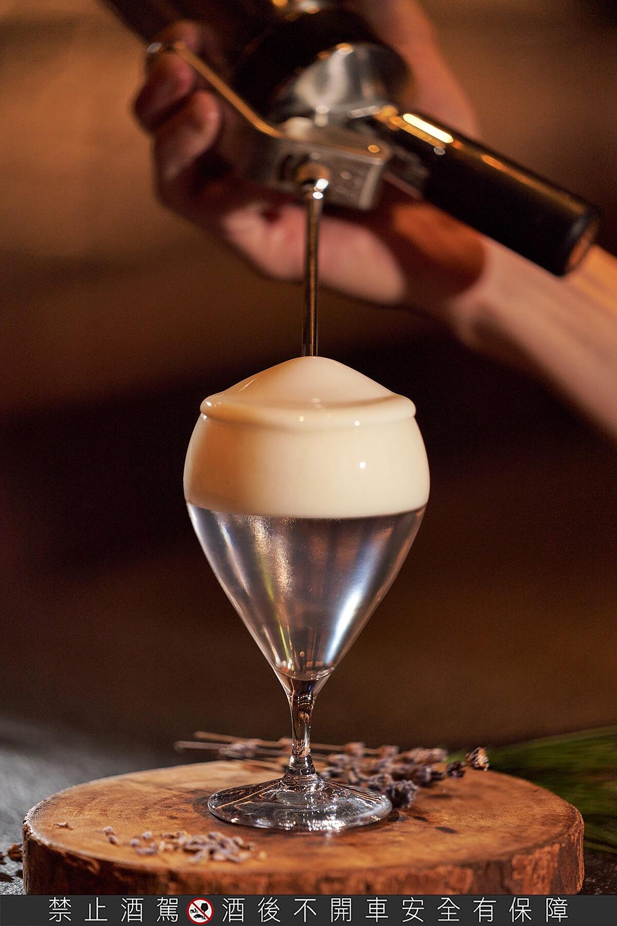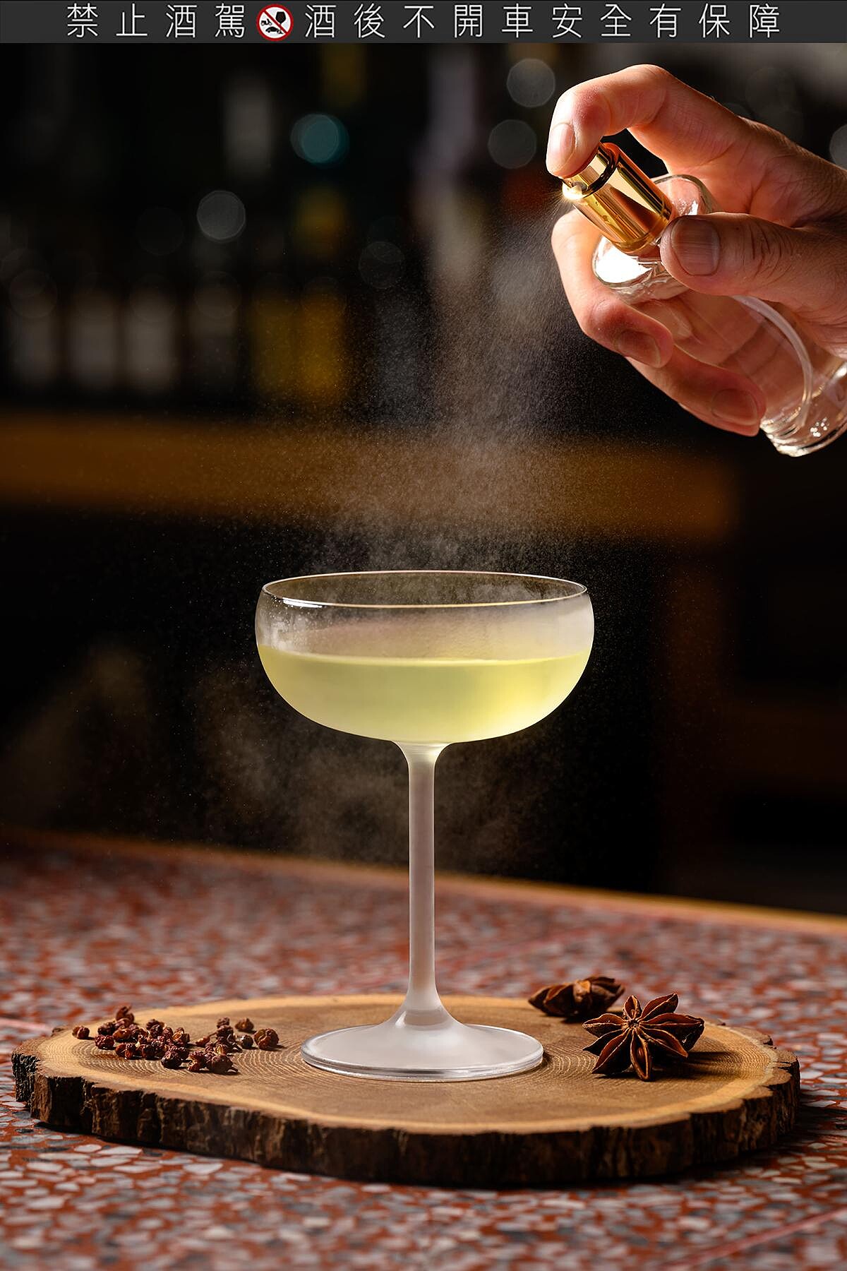 特別以清酒-真澄作為基底,以蘆筍汁的青草香氣及清甜融合清酒的辛辣,最後噴灑花椒與八角打造更具深度的香氣,琴酒在尾韻挑出草本的辛辣調性之餘與八角香氣呼應,創造出風情萬種的迷人風味。