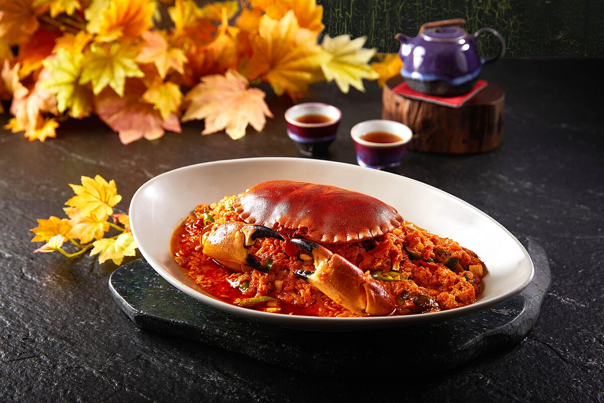 《望月樓》座落於新北地標百揚大樓48樓,有著「新北第一粵菜餐廳」的美名,今年特別推出了「一蟹知秋」限定活動,除了「紅油咖哩炒麵包蟹」的主食材為舶來品之外,其他菜色均以天然野生捕獲的在地萬里蟹(包含花蟹、三點蟹和石蟳),製作出一道道美味的蟹料理!