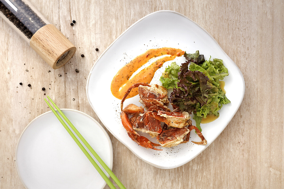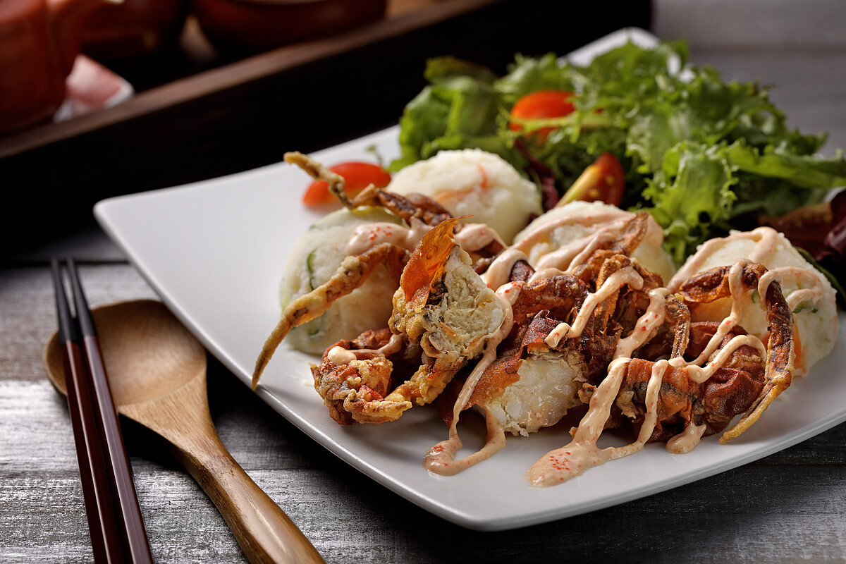 軟殼蟹最常見的烹調手法就是「炸」,而今年秋季料理長特別將酥炸軟殼蟹變化出多道料理,打造出讓人忍不住一口接一口的蟹料理!