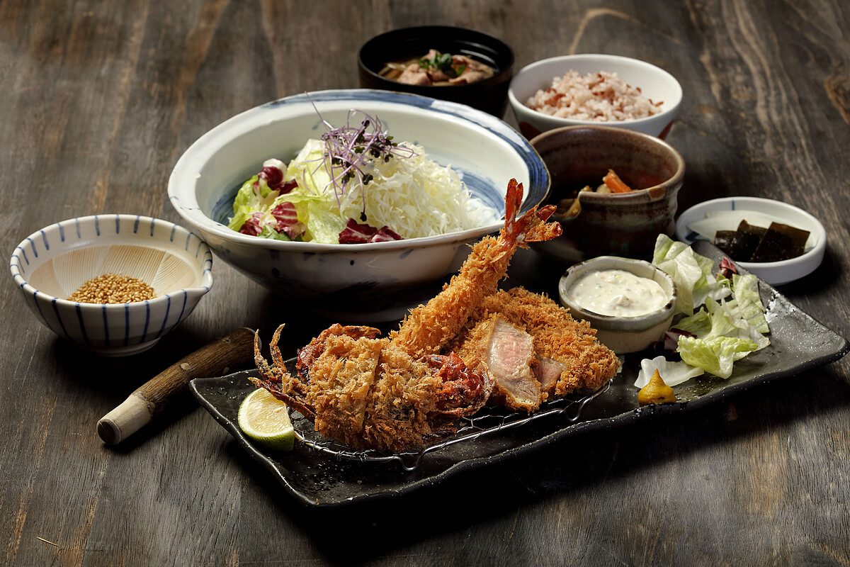 除了也能夠品嘗到酥炸軟殼蟹外,更將軟殼蟹、大草蝦與稀少珍貴的老饕豬排一次呈現,不論是想吃海鮮或是大口吃肉都能一次滿足!