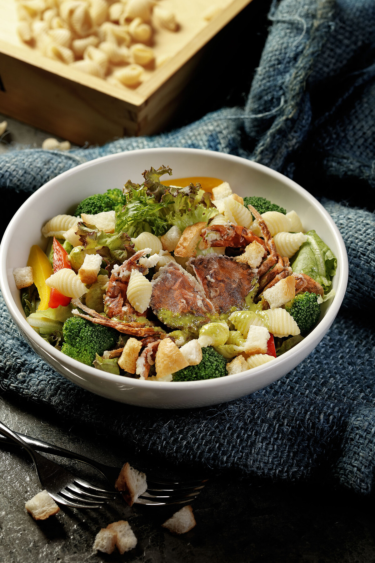 還有和風青醬搭配軟殼蟹、生菜的所打造的清爽系「軟殼蟹青醬貝殼麵沙拉」。
