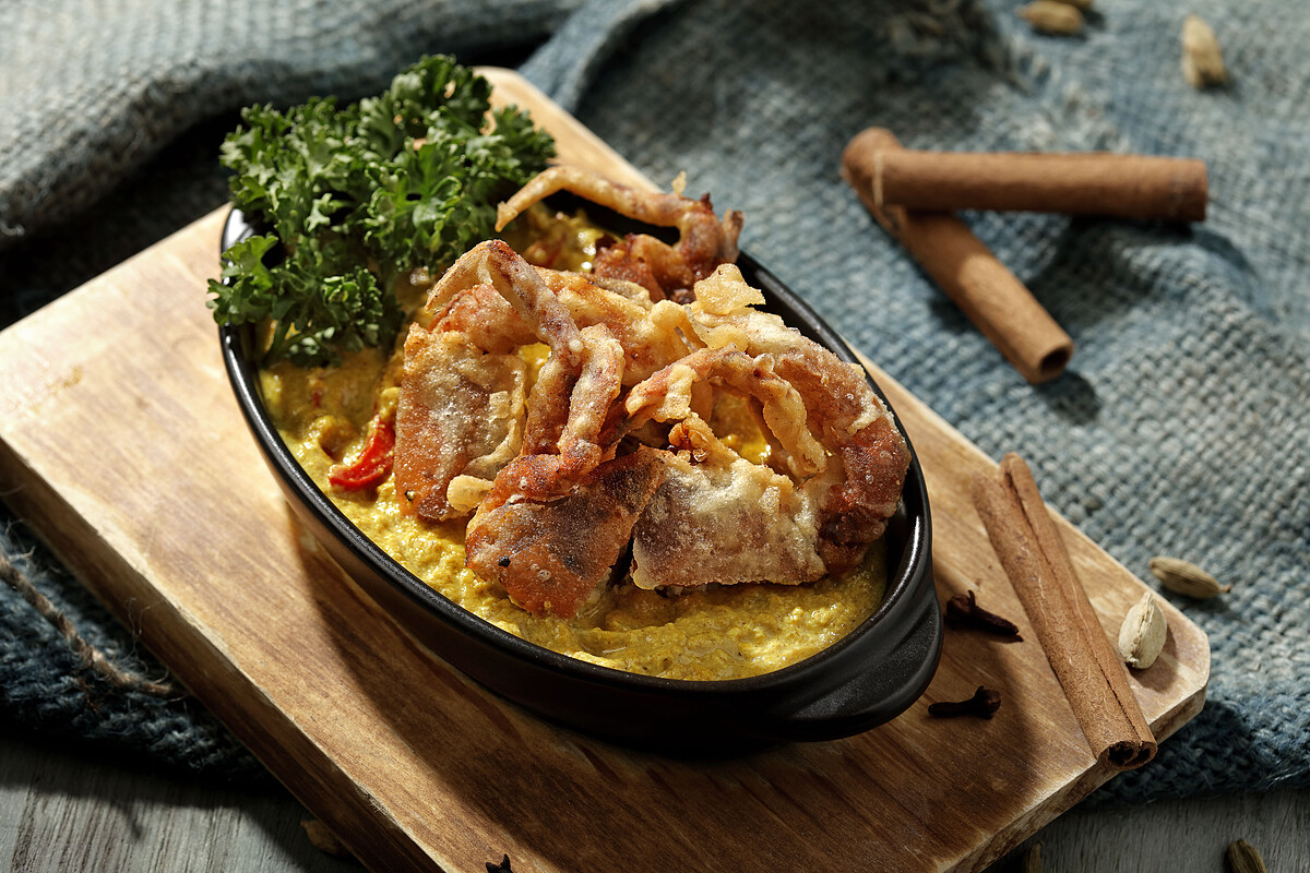 想要品嚐不同的咖哩,可以試試「酥炸軟殼蟹湯咖哩」,當軟殼蟹吸附了滿滿的,入口時的爆汁口感,讓人允指回味。
