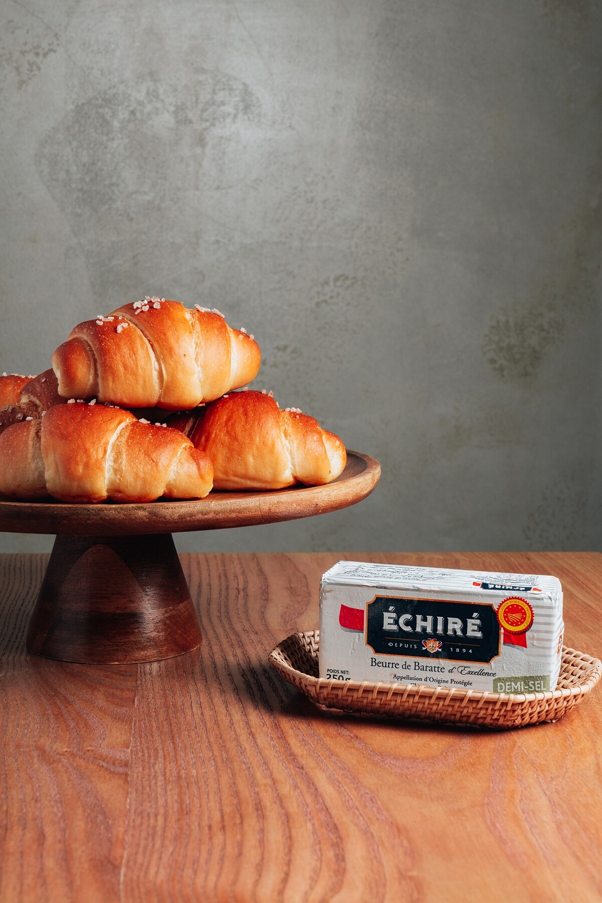 生吐司人氣品牌嵜本SAKImotoBakery在秋季推出兩款奶油捲,分別是鹽之花以及黑松露口味,皆以日本嵜本麵粉及歐盟 AOP 產區認證、享有「奶油界LV」盛譽的法國艾許無鹽奶油製成,其中「鹽之花奶油捲」以法國布列塔尼海岸知名的頂級海鹽,加上百花蜜與比利時無鹽發酵奶油,高貴的鹹香滋味太開胃。