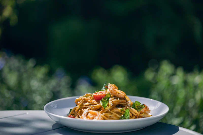 而「那個炸雞」則是修改了麵衣配方,讓炸雞更加酥脆,並融入蜂蜜提味,鹹中帶甜的滋味讓人一塊接一塊,還有麵控必點的「蝦高湯鮮蝦蘆筍義大利麵」,吸飽龍蝦高湯和蝦油,加上彈牙的麵體,肯定要來上一盤。