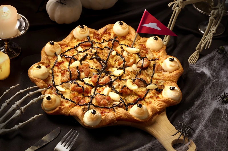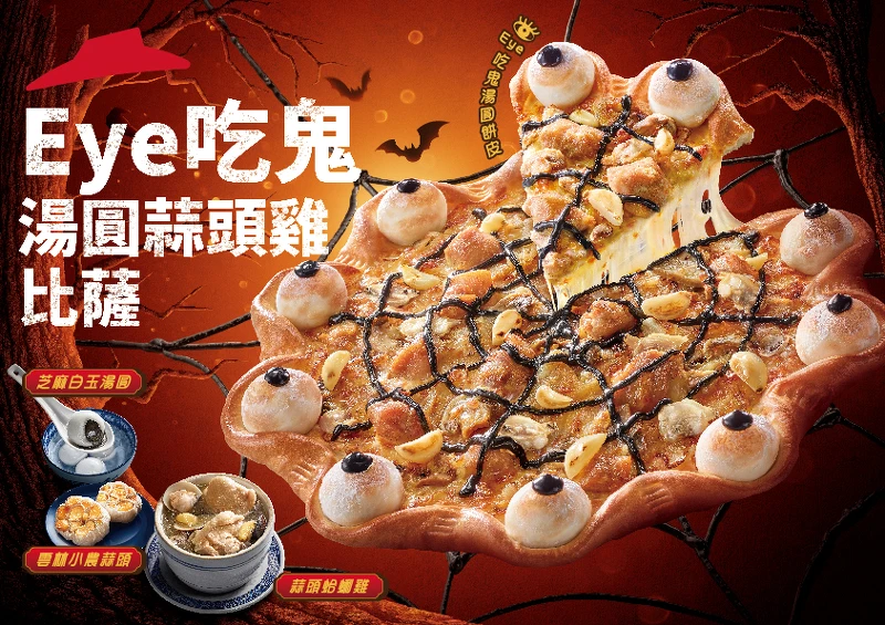 迎接月底的萬聖節,必勝客也出招啦!全新推出「Eye吃鬼湯圓蒜頭雞比薩」新口味,外型更打造驚悚路線!