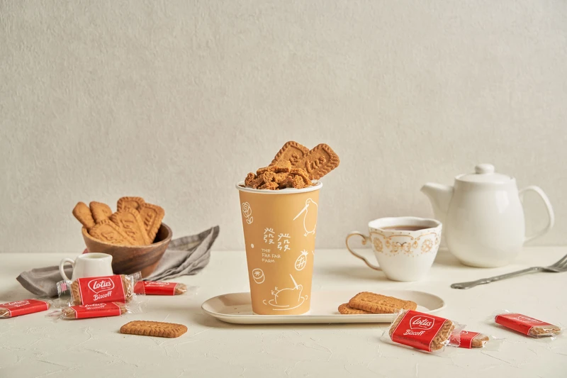 打造優格飲系列的《發發》在信義區展新店,同步推出輕食系「蓮花餅乾系列」,將比利時蓮花薄脆餅加入手搖中,分別打造「蓮花餅乾鮮奶茶」及「蓮花餅乾可可優格」兩款新品,其中「蓮花餅乾鮮奶茶」嚴選來自斯里蘭卡的錫蘭紅茶,加上台農崙背鮮奶,入口前撒上酥脆可口的比利時蓮花薄脆餅乾,讓口感更多層次。
