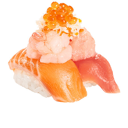 一次集結了壽司郎人氣食材,將鮭魚、鮭魚卵、蔥花鮪魚、鮪魚、甜蝦、蟹肉、飛魚卵等7種豪華食材製作而成,每一口都能感受海鮮的鮮甜滋味,海鮮控們真的會瘋掉!