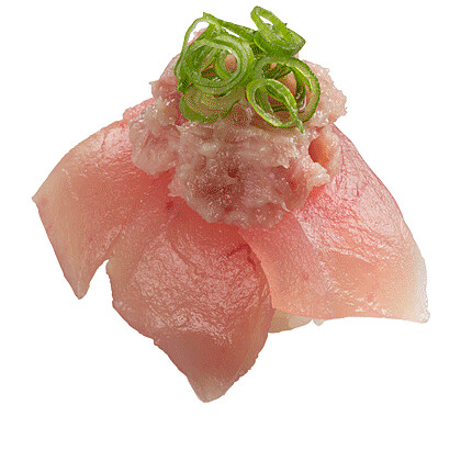 嚴選超低溫冷凍的新鮮野生長鰭鮪魚,奢華疊上3大片,再放上蔥花鮪魚泥,更增添風味深度層次,絕對是鮪魚控的首選推薦!