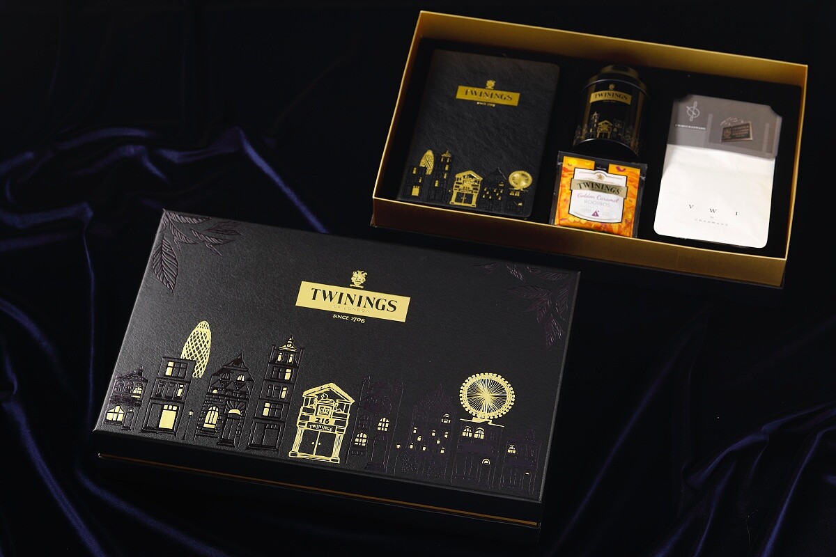 全新禮盒絕對會讓茶飲控、咖啡控們集體失心瘋!外盒以TWININGS燙金LOGO搭配倫敦Strand Shop創始店街景打造而成的黑色皮質手工盒,整體設計充滿質感、內斂且沈穩,散發量身定制的獨特與尊榮感!