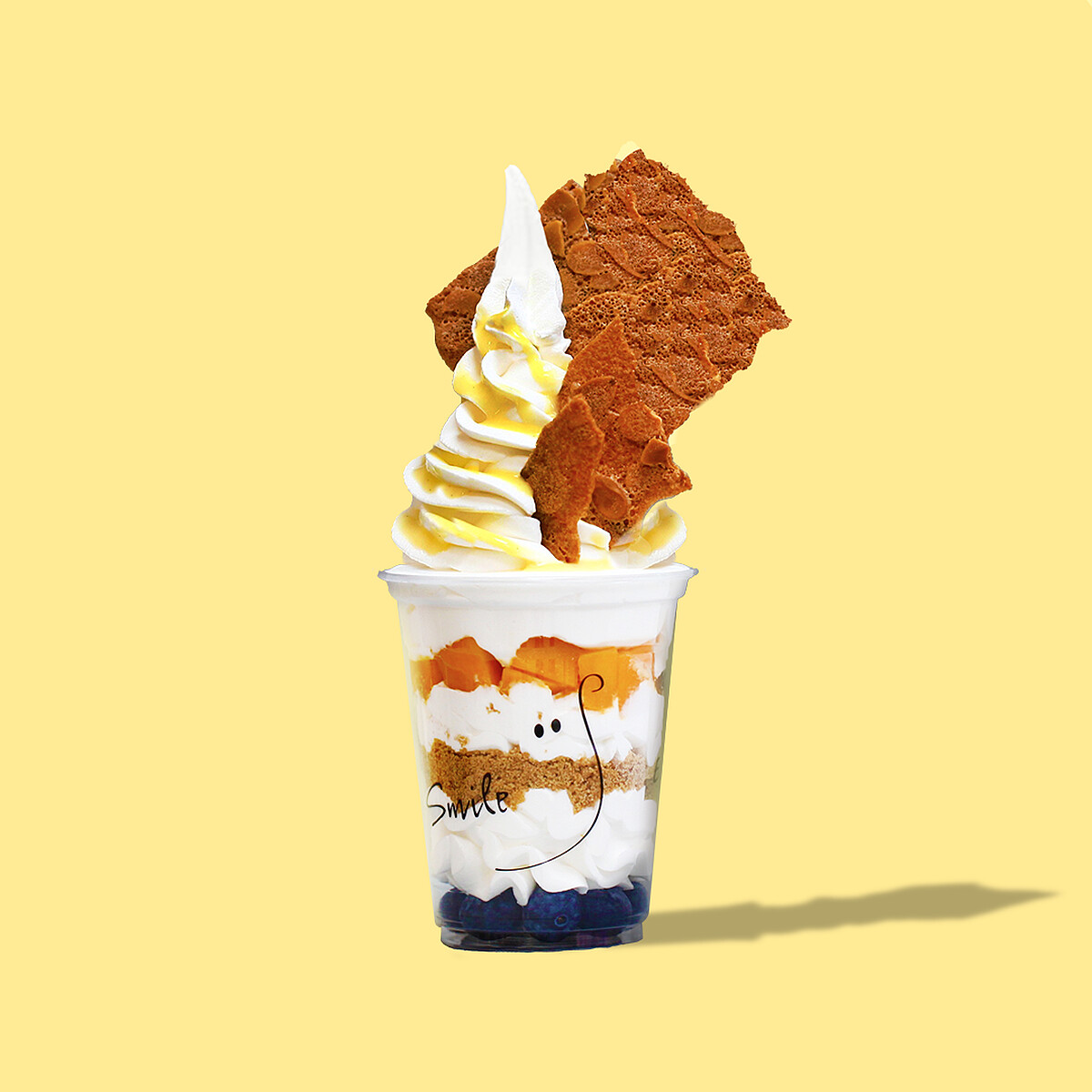 運用深受大眾喜歡的香草口味做發想,並將新鮮芒果、進口藍莓和自製脆粒餅乾融入優格基底,再淋上法國香草醬,佐以香草風味的杏仁脆片做為裝飾,在享用新鮮水果同時品味濃濃的香草滋味,沉浸於兒時回憶