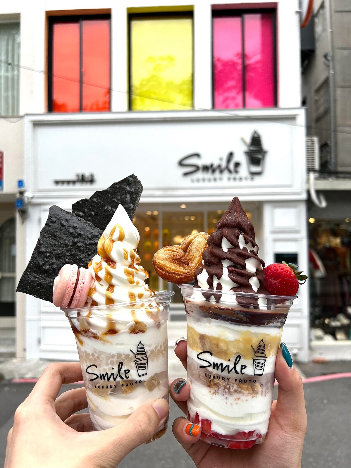 光是Smile Froyo店面就讓人忍不住想多停留一下,整棟建築物延伸霜淇淋的精緻色調,以時尚極簡靚白為基調,並採用馬卡龍色系的窗戶與形象牆妝點,就像是一個藝術場域般,肯定會成為網美拍照新景點。