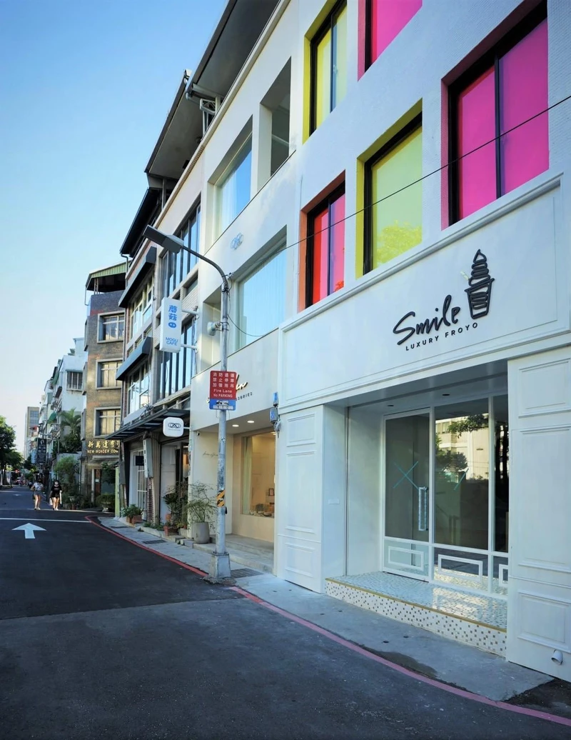 光是Smile Froyo店面就讓人忍不住想多停留一下,整棟建築物延伸霜淇淋的精緻色調,以時尚極簡靚白為基調,並採用馬卡龍色系的窗戶與形象牆妝點,就像是一個藝術場域般,肯定會成為網美拍照新景點。