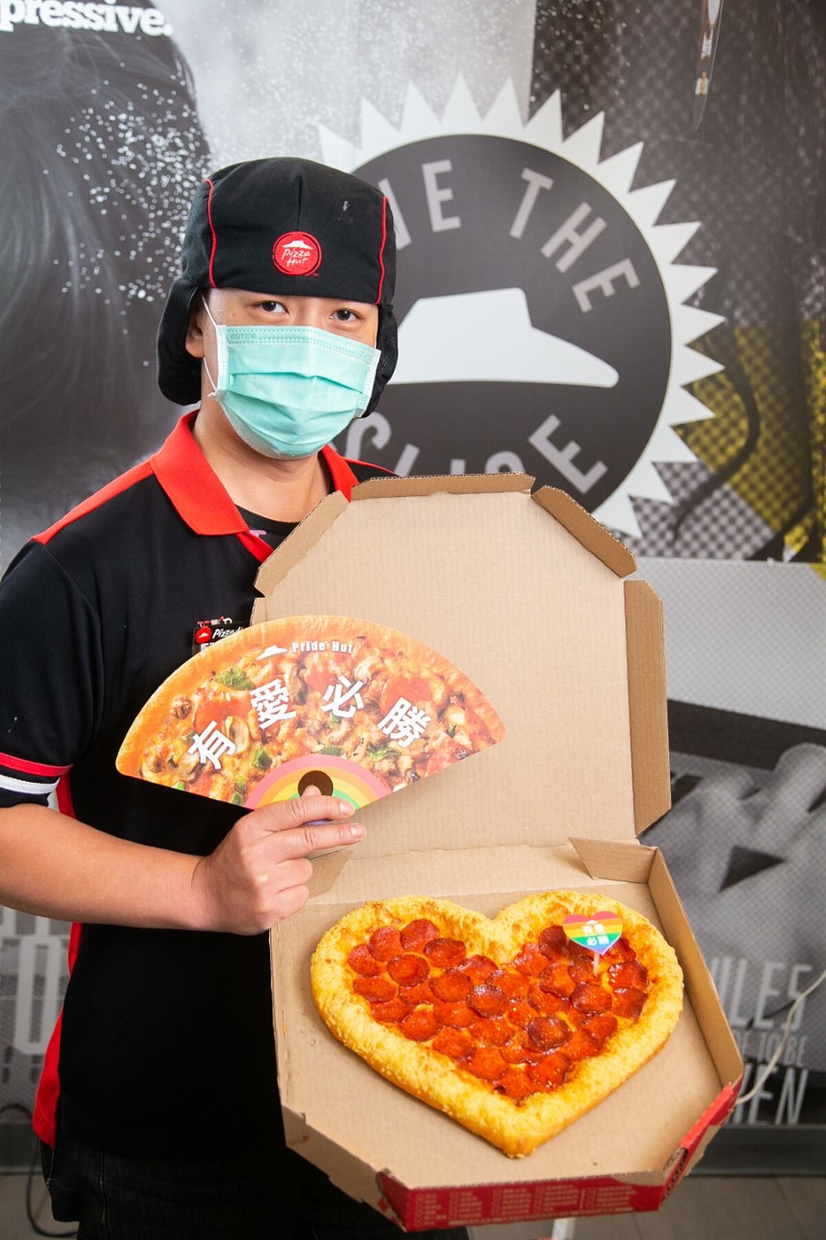用行動力挺彩虹驕傲月,必勝客的「有愛必勝比薩」回來了,採用愛心造型的獨家帕瑪森餅皮,加上經典美式臘腸搭配莫札瑞拉起司,外觀超可愛,在10月29日台灣同志遊行必勝客攤位上,6人一組拍照打卡,就可以免費獲得。