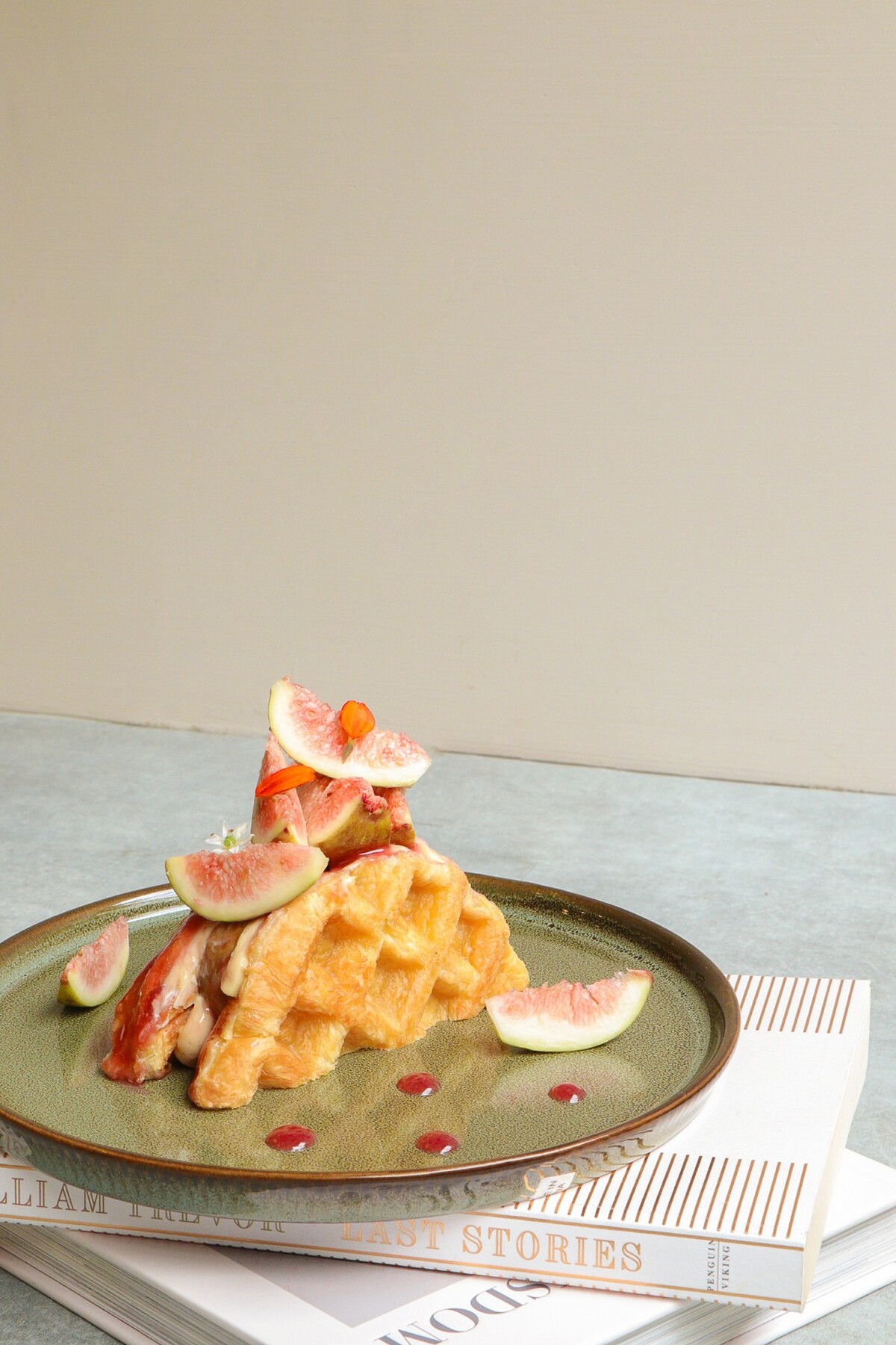 以秋季限定的無花果為主軸,打造出這款吸睛度爆表的「無花果可頌鬆餅」,內餡以香草卡士達與覆盆子無花果醬完美融合,入口感受酸甜細緻的口感,伴隨著無花果淡雅的香氣,非常清爽!