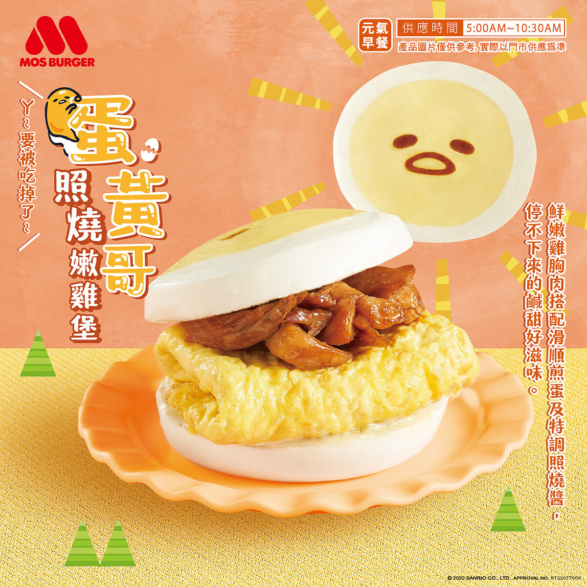 把荷包蛋造型的兩片式饅頭,烙印上蛋黃哥最經典的表情,再夾入國產雞胸肉並沾上經典蜜烤醬,搭配煎蛋一同夾入饅頭,一口咬下感受淡淡的奶香味,感受多層次口感配料,呈現出獨特的照燒風味,讓人一吃就愛上!但限量是殘酷的,蛋黃哥粉絲們要吃要快啊!