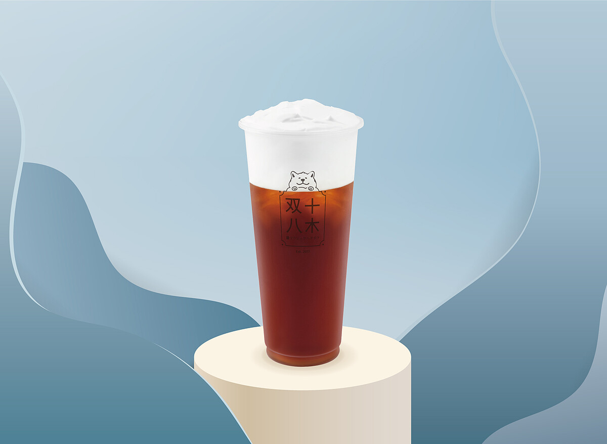 雲奶蓋也是《双十八木》菜單招牌之一,將奶蓋與原茶以2:8打造出最完美比例,鹹甜適中口感搭配茉生燻茶中的大吉嶺紅茶,濃郁又融合的果香氣息,真的讓人在轉眼間就喝完一整杯!