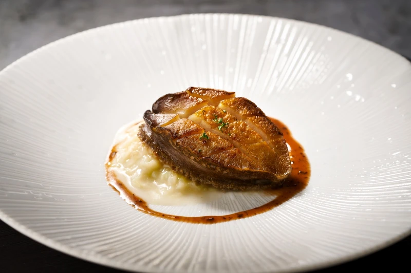 將南非活鮑以白蘭地燜煎,佐以五大法式母醬衍伸的波特松露醬,加入黑松露醬熬煮4小時,打造出滑順且充滿膠質的誘人光澤,濃厚的尾韻在口中層層堆疊,讓人一吃就驚豔!