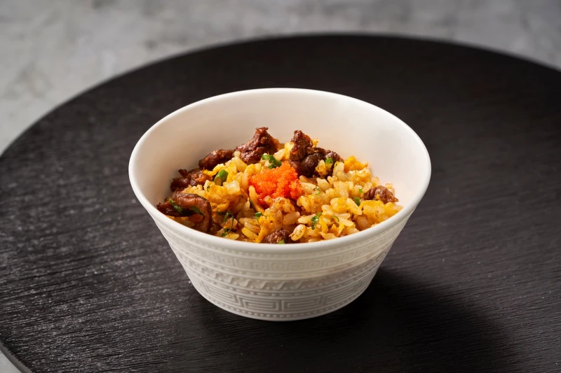 其實品嚐完Prime牛小排已經相當的飽足了!但當牛筋飛魚卵炒飯一端上桌後,又讓人忍不住食慾大開!看似樸實的炒飯卻非常考驗主廚火侯掌握,先將先將牛筋燉煮軟嫩入味後,在鐵板上醬油煸香,接著加入台梗11號米攤平拌炒,讓每粒米沾裹醬油煎出醬香,其搭配飛魚卵,鹹香滋味讓人一不小心又完食啦!