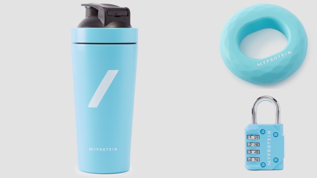 Myprotein針對2022年雙11檔期更推出一系列天藍色配件,包含會隨著冷水變成深藍色外型的「溫變不銹鋼搖搖杯」、隨時訓練手指頭肌力的「握力器」、運動必備的「健身櫃密碼鎖」,為強健體魄的時刻增添一絲活力清新氛圍。