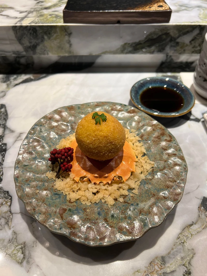 以日本北海道七星米及愛知縣4-6年熟成的赤醋,打造出的壽司飯,完全無加糖調味,加上整隻大閘蟹製作成一貫壽司,是本季主打亮點菜色,蟹控們肯定會欲罷不能。